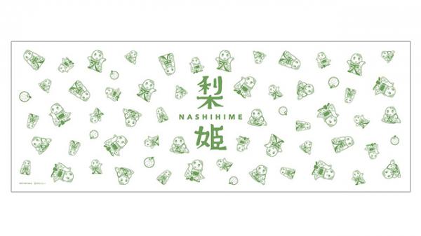 ▲ “ふなっしー梨姫手拭い『梨姫』の文字といろいろな姿の梨姫が描かれたオリジナルの“手拭い”のセット販売も。