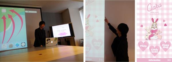 - (左・中央)開発を進めたアプリの最終プレゼンを行う学生/ (右)開発されたアプリのスクリーンショット -