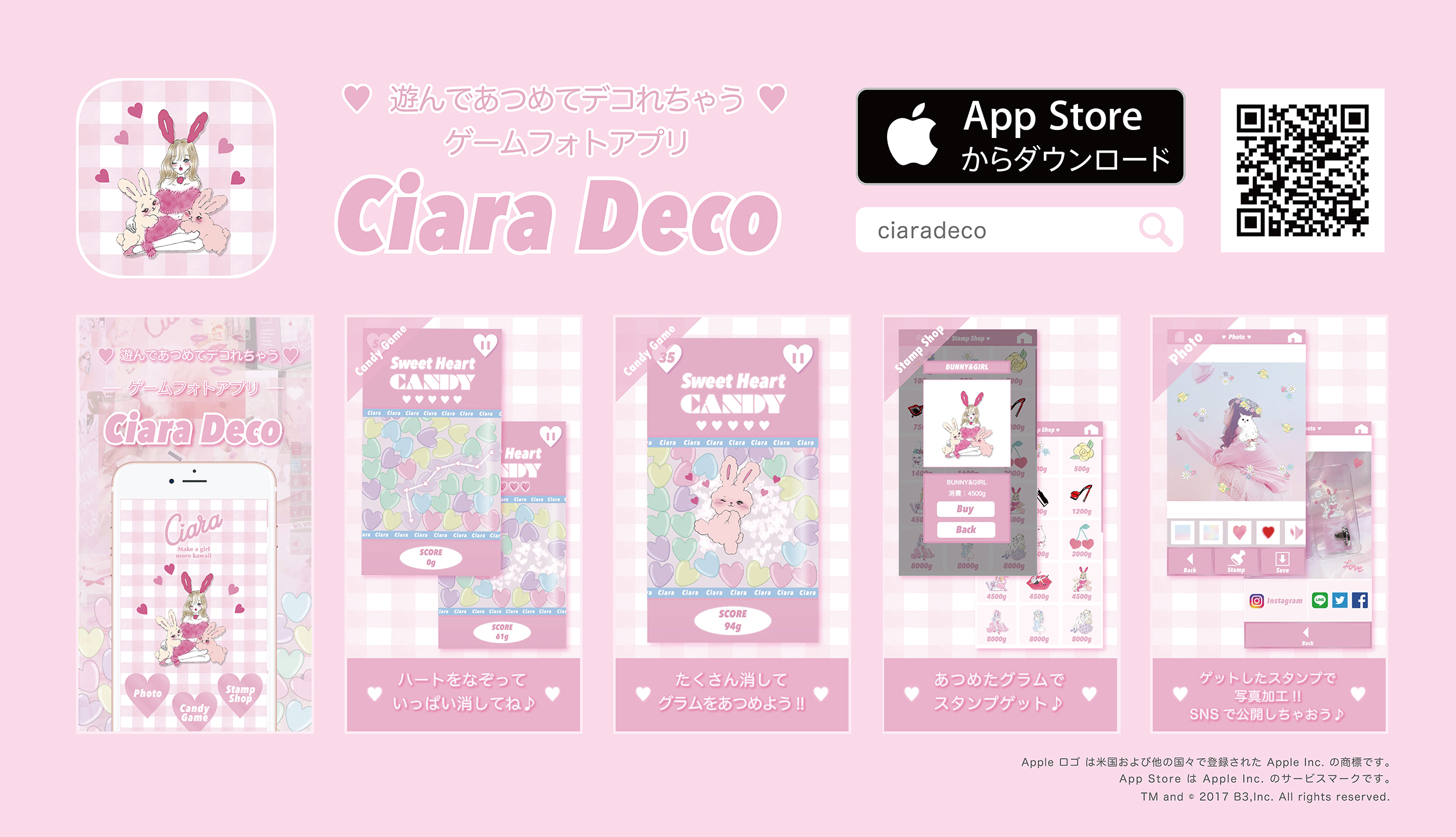 -今回共同開発されました、「Ciara」(シアラ)公式ゲームフォトアプリ『Ciara Deco』の紹介画像-