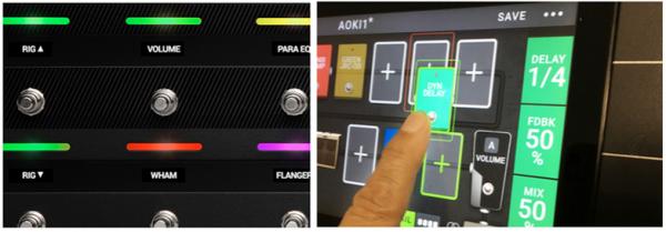 タッチ、スワイプ、ドラッグ&ドロップによる操作はまるでスマホアプリ。また各エフェクトのフットスイッチを長押しすることでハンズフリーモードに変化。フットペダルを使っての音色のパラメーター設定が行えます。