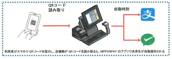 当社のマルチ決済サービスは、訪日中国人が「WeChatPay」と「Alipay」のどちらの支払いでもスムーズに精算が出来るようにするために、「WeChatPay」と「Alipay」のQRコードを自動判別する機能を日本で初めて搭載致しました。これにより店舗側は、「WeChatPay」「Alipay」を意識せずに当社のマルチ決済アプリでQRコードをかざすだけで決済が完了出来るようになります。