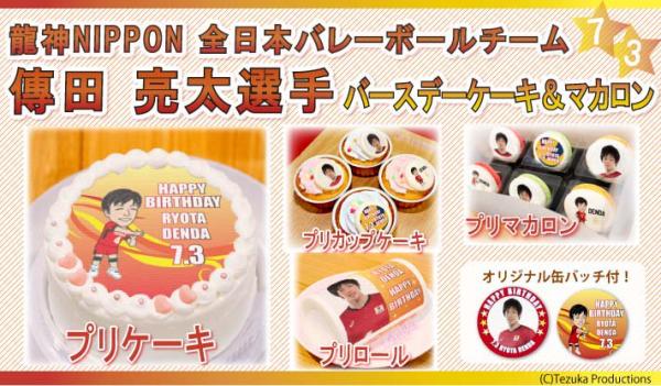 「プリロール」を運営する株式会社栄通(本社:東京都八王子市)は、全日本バレーチーム『龍神NIPPON』の傳田亮太選手の誕生日(7月3日)を記念したプリントケーキ・マカロンを2017年6月21日(水)に発売いたしました。特典で当店限定缶バッジ(非売品)をお付けして全国へお届けいたします。