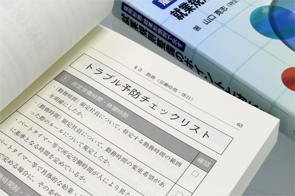◆各セクションには「トラブル予防チェックリスト」を登載していますので、規定の作成や見直しの際には規定内容ごとに注意すべきポイントがひと目でわかります。