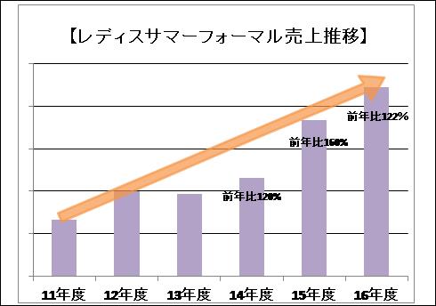 近年、夏の気温上昇の傾向が顕著で、さらに夏場は葬儀やお盆のお墓参りなどで礼服の着用機会が多いこともあり、軽くて通気性の良いレディスサマーフォーマルの要望が年々増加しています。「洋服の青山」では、2016年度のレディスサマーフォーマル売上高が2013年度と比較して2倍以上となっていることから、今期は過去最大の計13種類、30,000着と豊富に品揃えし販売を強化していきます。