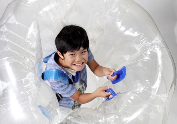 ・参加者は球体型のバルーンバンパーを身にまといます。