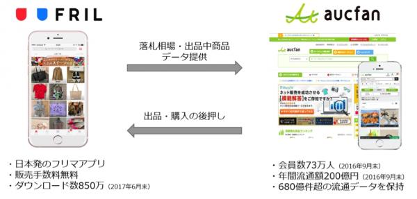 「フリル」は2016年10月から販売手数料を無料にしました。その後「フリル」の利用者約1万人を対象に意識調査をしたところ、出品者の72.5%(n=5,417)が「他のフリマアプリよりも安く値付けをしている」ことがわかりました。また、購入者の71.1%(n=4,698)が「他のフリマアプリよりも安く購入できるようになった」と考えていることもわかりました。しかし、一方で「フリル」には1日に数十万点の出品があり、それらの商品群から「お得な価格の商品を見極めるのが難しい」といった声も購入者から寄せられていました。今回のデータ連携では、「aucfan.com」での相場検索を可能にすることで、「フリル」でのお得なショッピングをさらに楽しんでいただくことを狙いとしています。