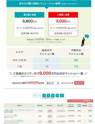 世帯年収の入力だけで、希望エリア内の購入可能物件を一覧表示