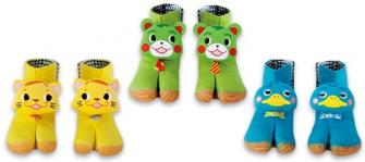 製品特徴 1~3歳児を対象とした地下足袋。クマ(黄緑)、ネコ(黄)、ペンギン(水色)の3種類。