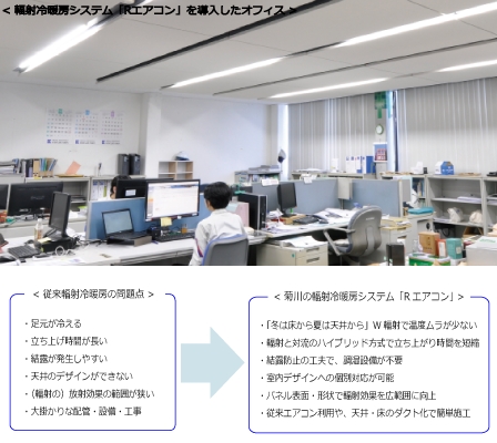 建築物の金属製内外装工事を手がける菊川工業株式会社(本社:東京都墨田区、代表取締役社長:宇津野嘉彦、以下菊川)は、主にビル空調における省エネと快適な室内空間を簡単施工で実現する環境建材、輻射冷暖房システム「アール・エアコン(R Air-con)」を製品化し、2017年7月より販売を開始します。