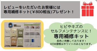 さらにレビュー投稿の際、コメントとともに、お部屋のビフォー・アフター、商品や施工中等の写真を投稿すると、専用補修キットに加えEM珪藻土と同じ稚内産珪藻頁岩を使用したEM珪藻土消臭パックもプレゼントします。