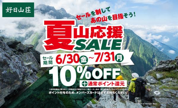 登山・アウトドア用品販売とクライミングジム運営を展開する株式会社好日山荘(本社:兵庫県神戸市)は2017年6月30日(金)より全国の店舗において「夏山応援セール(10%OFF)」を開催いたします。