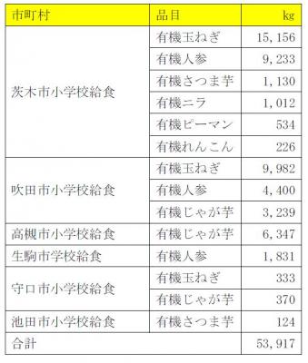 2016 年度は、大阪府・奈良県の計6 市(茨木・吹田・高槻・生駒・守口・池田)で、合計53,917kg(対前年+9,937kg)の有機野菜を学校給食のメニューに取り入れていただくことができました。