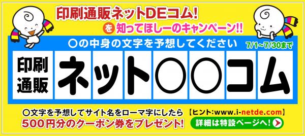 とってもお得な印刷通販ネットDEコムを知ってほしーのキャンペーンを展開中です。