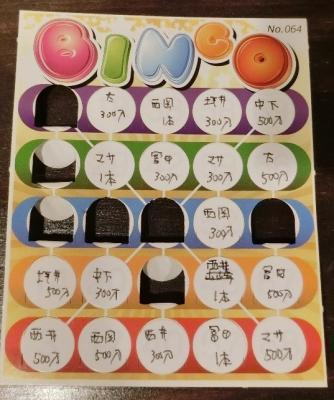 ・社内でビンゴゲームを開催。タテ・ヨコ5マスずつ、計25個のマス目に、