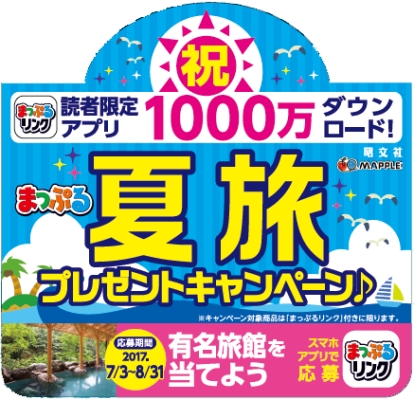1000万ダウンロードを突破を記念して、まっぷるを購入すると応募できる<まっぷる夏旅プレゼントキャンペーン>を開催しております。