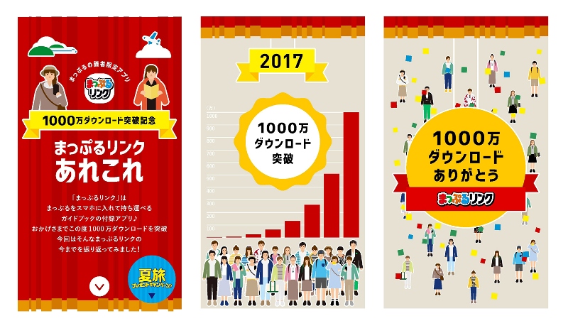 累計1000万ダウンロードに感謝の気持ちを込めて当社コーポレートサイト(http://www.mapple.co.jp/ )内に「1000万ダウンロード突破記念 まっぷるリンクあれこれ」ページを開設。