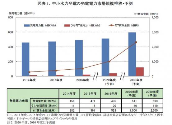 2030年度の中小水力発電の発電電力量は593億kWhに拡大と予測