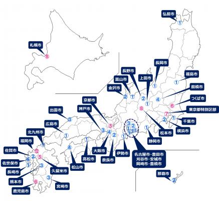 * 数字は、各都市が10位以内に入ったランキングの数を示します(5つ以上は赤、4つ以下は青で表示)。
