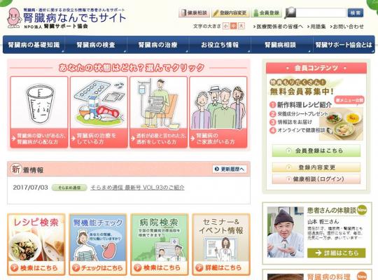 NPO法人腎臓サポート協会では、ホームページ『腎臓病なんでもサイト』などを通じて、腎臓病患者さんとそのご家族に役立つ情報を提供しています。また会員の方は無料で腎臓病のオンライン相談を行っております。