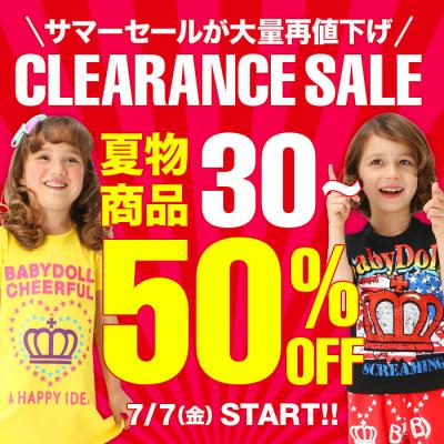 株式会社コージィコーポレーションが運営するベビー・キッズ服ブランドBABYDOLL(ベビードール)がBABYDOLL(ベビードール)・STARVATIONS(スターベイションズ)、通販各店にて、7月7日(金)より『クリアランスSALE★夏物大量再値下げ!< 30~50%OFF >』を開催します。