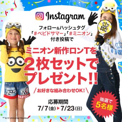 ハッシュタグ「#ベビドサマー」と「#ミニオン」を付けて『BABYDOLL着用写真』又は『BABYDOLL or STARVATIONS来店写真』をInstagramに投稿。