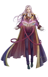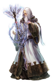 白髪に白が基調となるローブは、一見してセフィド所属のキャラと思わせてしまう危険性のある冒険した配色です。しかし幅広の裾や三重になった袖口などにオーラムのカラーである金を広く置き、そこの描き込み密度を上げて目立たせる事で、それを回避しています。そして白多めの冒険した配色が「理想は燃え尽き、灰と枯れた」感を出すのに一役買っています。絶妙なバランス感覚です。