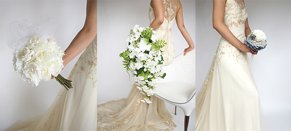 メリアルームのウエディングブーケは、ファッショナブルでファビラスな大人の花嫁が似合うオンリーワンブーケ「オートクチュールブーケ」を提案しています。それは、 「他にはない」「上質な」「彼女らしさ」をポイントに、アーティフィシャルフラワーの自由度を活かし、既成概念にとらわれずもっと自分らしく自由な花嫁になれるデザインブーケです。