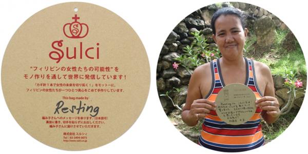 また、今シーズンからは、バッグに付いている編み子さんのサインが書いてある丸台紙の裏面をメッセージカードにリニューアル!日本とフィリピンをつなぐ取り組みを開始しました。