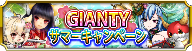 「GIANTYサマーキャンペーン」はGIANTYの看板タイトル「あやかし百鬼夜行 ~極~」「モンスター ドライブ レボリューション」「あやかし百鬼夜行 魂 ~妖界王伝記~」の3タイトル合同の夏のキャンペーンになります!この夏はGIANTYのゲームを遊びつくそう!