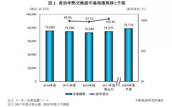 ◆2020年度の国内の高効率熱交換機市場規模は787億1,000万円に達すると予測