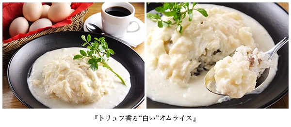 赤ワインとシーズニング醤油でじっくり煮詰めたお肉と玉ねぎを混ぜた洋風そぼろご飯をベースに、ふわトロの白い卵に絡む濃厚なホワイトソースのコクと、仕上げに加えたトリュフオイルの香りを楽しめる、高級感溢れるオムライスに仕上げました。