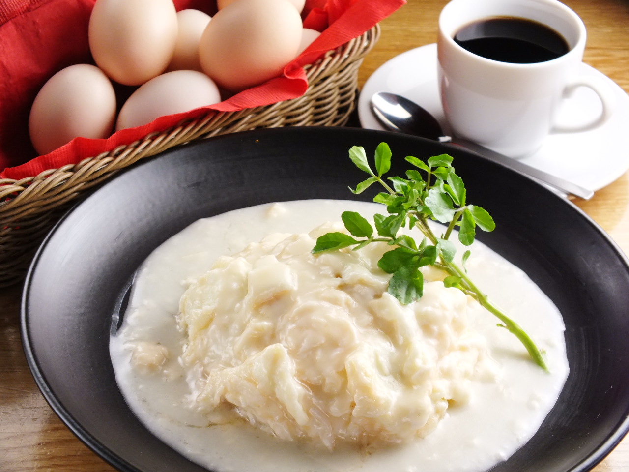 そして、試行錯誤を重ねた結果、白い卵の素材の味を活かすべくあえてあっさり風味に仕上げたそぼろご飯と、濃厚なホワイトソースとが見事に調和した一品が完成しました。