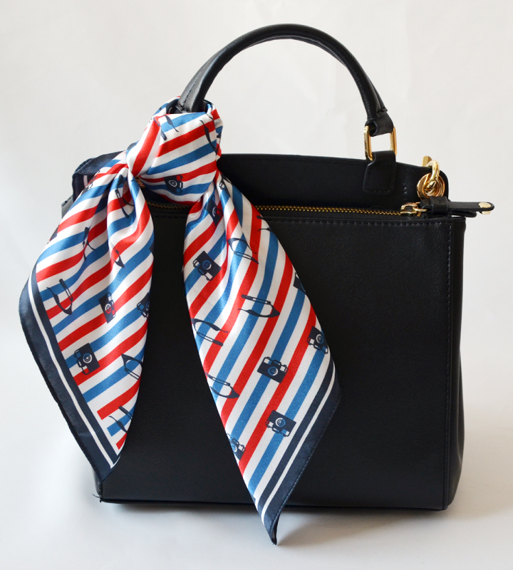 ジーンを象徴するタバコ、ニーノを象徴するカメラをシンプルにデザインしたスカーフをご用意しました。