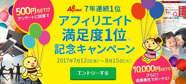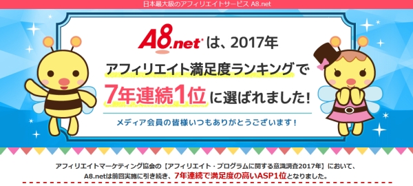 A8.net ASP満足度1位7年連続受賞記念ページ:http://support.a8.net/as/camp/asp2017/