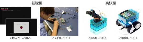 ブートキャンプの講座は、基礎編と実践編の2つがあり、基本編では、Raspberry PiやArduinoを初めて触る方でも、最初のOSなどの環境の準備からGPIOを使って簡単なハードウエアの操作ができるようになるところまでをお手伝いできるよう「超入門レベル」と「入門レベル」2つのレベルの講座をご用意しています。実践編では、更にRaspberry PiやArduinoを目的別の用途で利用するため、具体的なアプリケーションや用途ごとに、入門レベルの初心者から中級者までが楽しみながら学べる講座を用意しています。