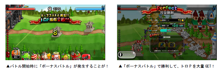 また、バトルを開始すると「ボーナスバトル」が発生することがあり、バトルの勝敗に関係なく、獲得トロPが