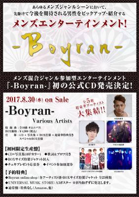 あらゆるメンズジャンルシーンにおいて、先駆けて今後を期待される男性をピックアップ・紹介するライヴエンターテインメント『男魁 -Boyran-』初のオムニバス形式による公式CDが2017年8月30日(水)に発売!