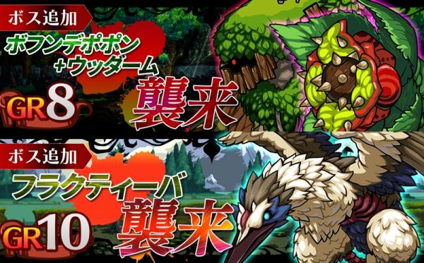 2017年7月21日(金)にクエストカウンター新ステージ「香木の危険な香り」、7月24日(月)には新ステージ「奥義 取鳥剣」が登場いたします。新ステージ「香木の危険な香り」ではボスモンスター「ボフンデポポンとウッダーム」が、新ステージ「奥義 取鳥剣」にはボスモンスター「フラクティーバ」が登場!どちらも手強いボスモンスターですので弱点属性を考慮して討伐しよう!