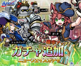 本日7月19日(水)から期間限定で新しく追加されたキャラクターの召喚確率がアップする「ニューフェイス」ガチャを開催いたします。本イベントでは今回追加されたキャラクター「ニック★3」「ガータ★3」「シャルバッツ★3」の召喚確率がアップします。