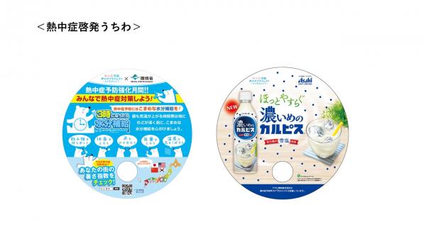 内容:熱中症予防を呼びかけて、広場にいる方に啓発うちわ、「濃いめの『カルピス』」と