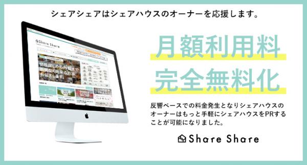 株式会社バンケッツ(本社:東京都渋谷区、代表取締役:板倉ようすけ)は、2017年7月20日よりシェアハウス検索サイト「シェアシェア」の新規掲載のプランを改定し、月額利用料を完全無料と致します。完全に反響ベースでの料金発生となり、シェアハウスオーナーはより手軽に物件をPRすることが可能となります。