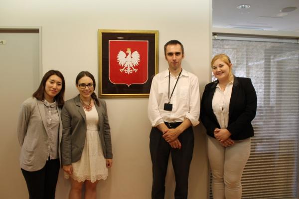 インターン期間中に駐日ポーランド大使館を訪問し、研修の状況や日本で学んだことについての報告をしました。