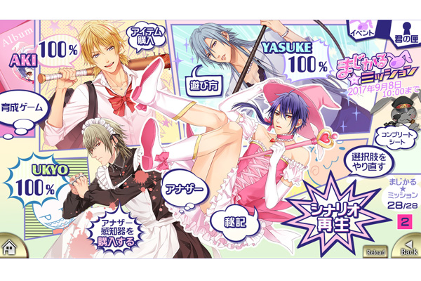株式会社エレメンツリー(代表取締役:小川 邦弘、所在地:大阪市淀川区)は、2017年7月28日にホラーBLゲーム『チギリバコ』(CV.四ツ谷サイダー、鳩マン軍曹etc)イベント「まじかる☆ミッション」の提供を開始しました!