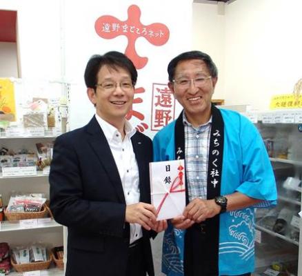 贈呈式は、同団体が埼玉県川口市で運営している復興応援ショップ「みちのく社中」で行われ、三井ダイレクト損保を代表して事業部 ゼネラルマネージャー 澤村 剛朗より目録を贈呈、遠野まごころネット 理事長 臼澤 良一氏より1年間の活動報告及び寄付金の使途についてお話しいただきました。