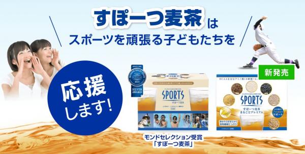 ただいま、すぽーつ麦茶 まるごとプレミアム(粉末タイプ)および、すぽーつ麦茶(煮出しタイプ)の無料試飲プレゼントを実施しております。