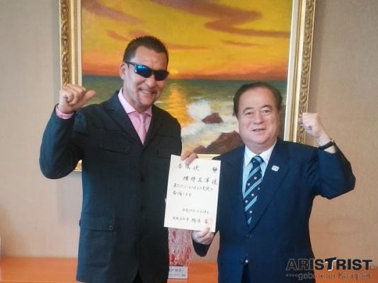 プロレスラーでアリストトリスト有限会社代表の蝶野正洋さんが、7月28日に茨城県庁において橋本昌知事より委嘱状を受け取り、『いばらき大使』に就任しました。