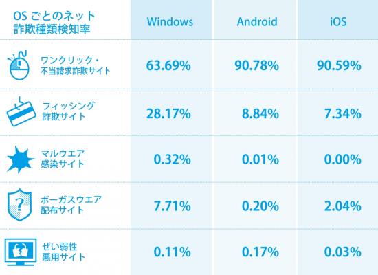 OSごとのネット詐欺種類検知率