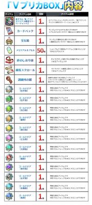 ※VプリカBOXを使用するといずれかのアイテムが1つ入手できます。