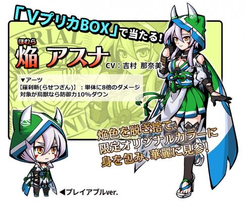 「VプリカBOX」からは一定の確率で「オリジナル限定カラー」の「焔(ほむら)アスナ」が入手できます。