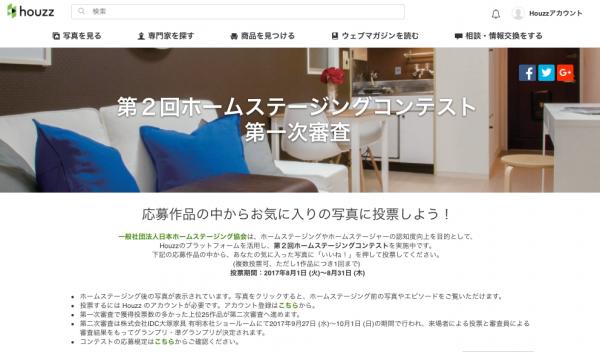 中古住宅・空き家、新築などの住宅をお片付け・掃除・インテリアを含めたトータルコーディネートで魅力的に演出し、効率的に流通させる「ホームステージング」の認知と普及を目指す一般社団法人日本ホームステージング協会(東京都江東区/代表理事:杉之原冨士子、以下日本ホームステージング協会)は、第2回ホームステージングコンテストの第一次審査となるオンライン投票を8月1日より、Houzz (※2)特設ページで開始します。